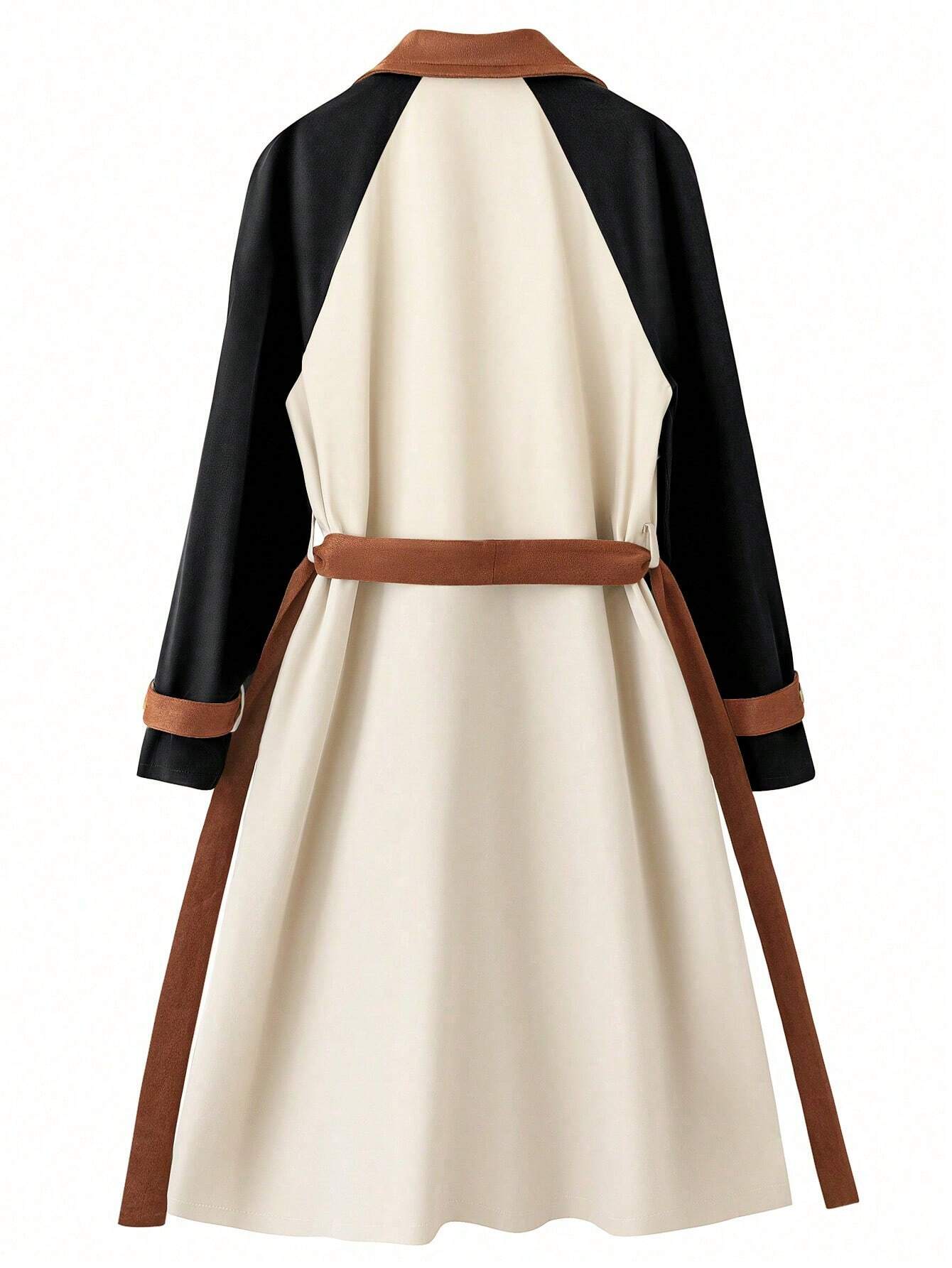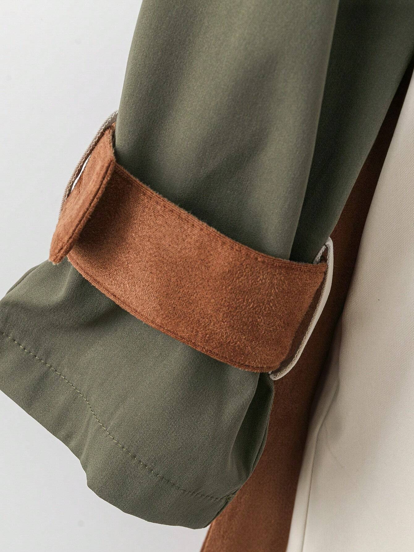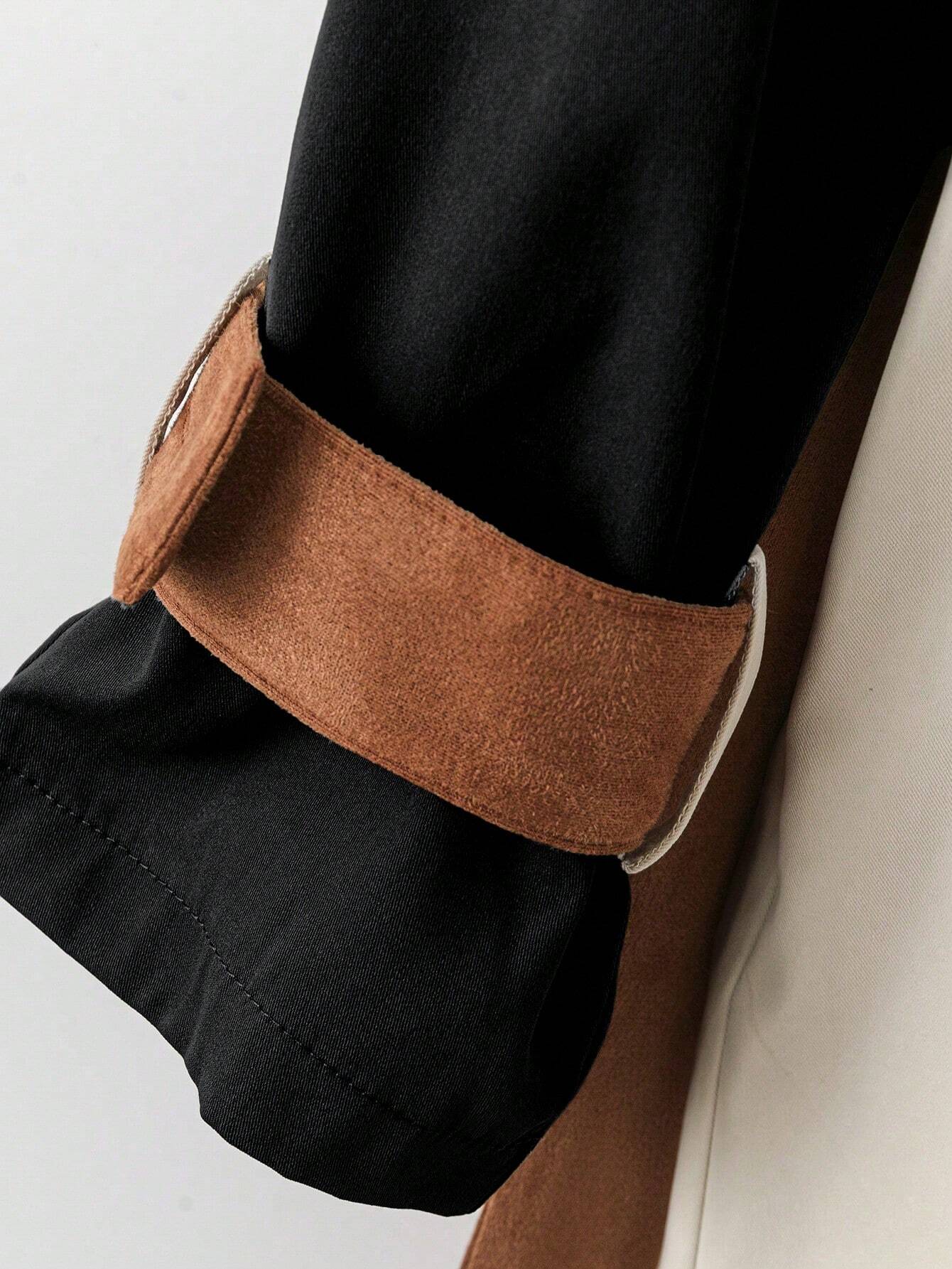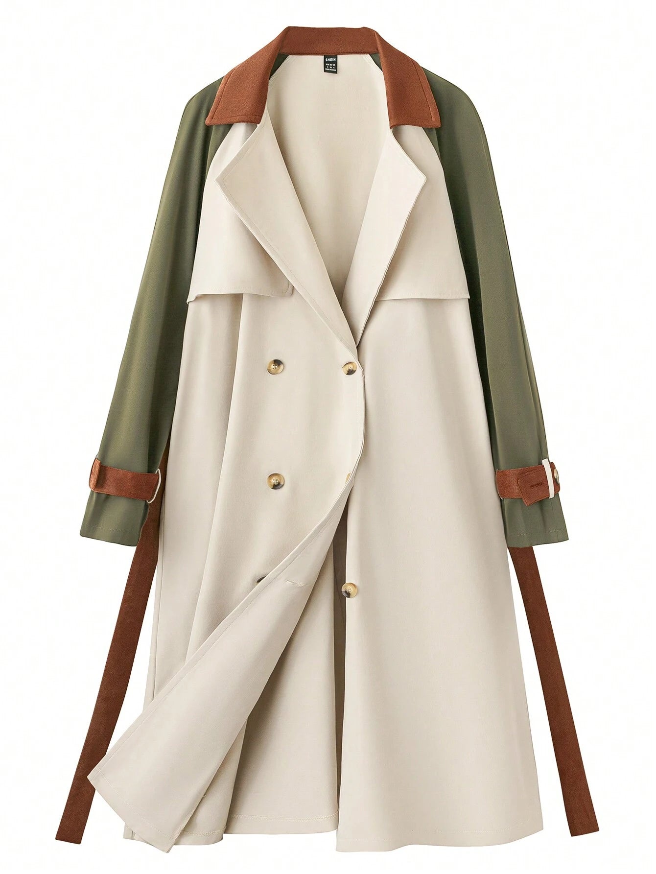Women's Solid Color Patchwork Front Button Casual Long Sleeve Trench Coat