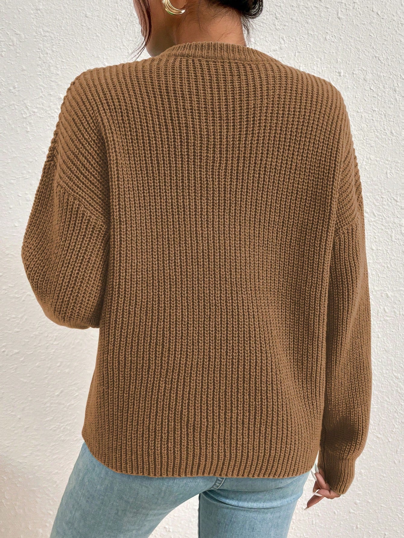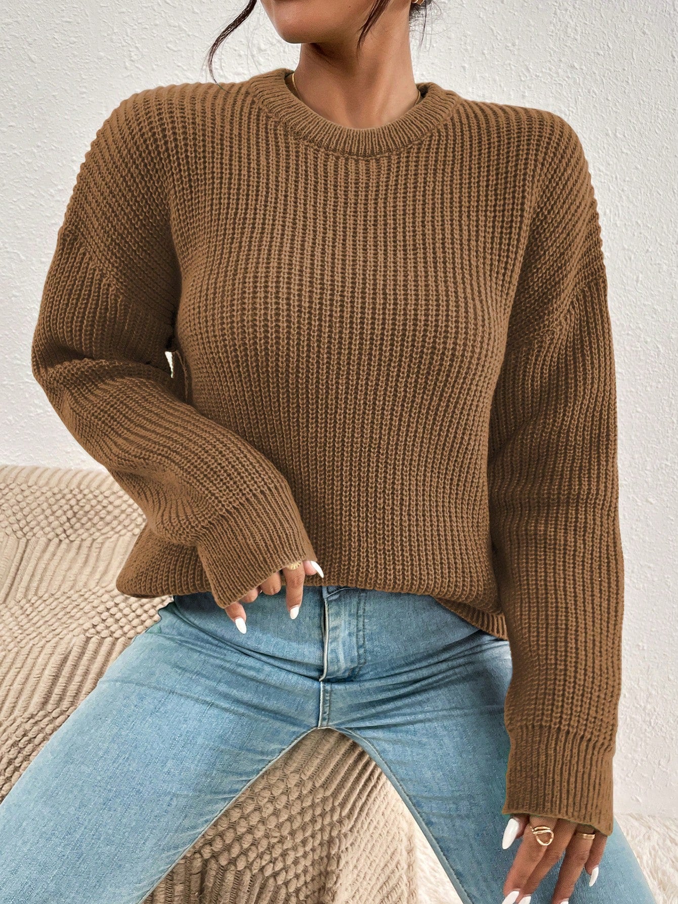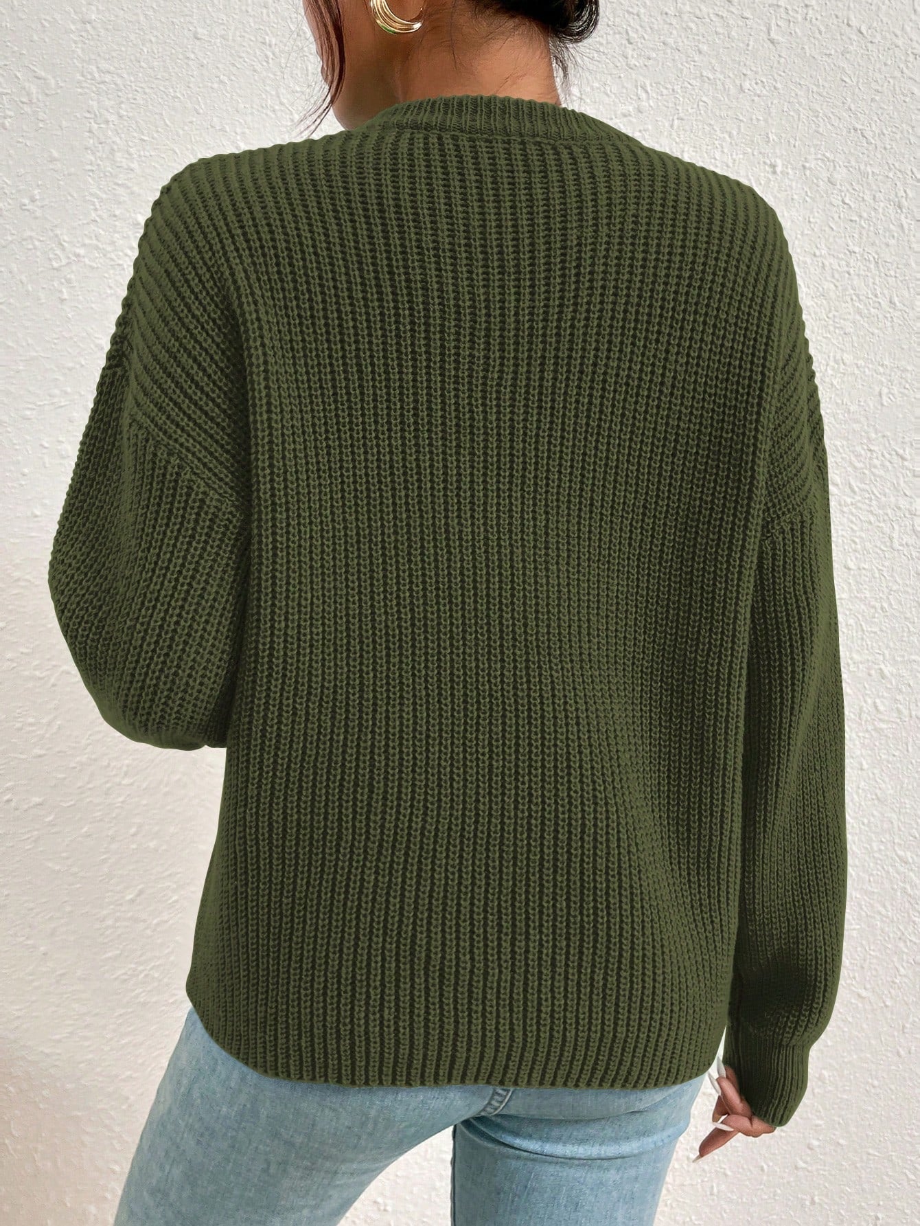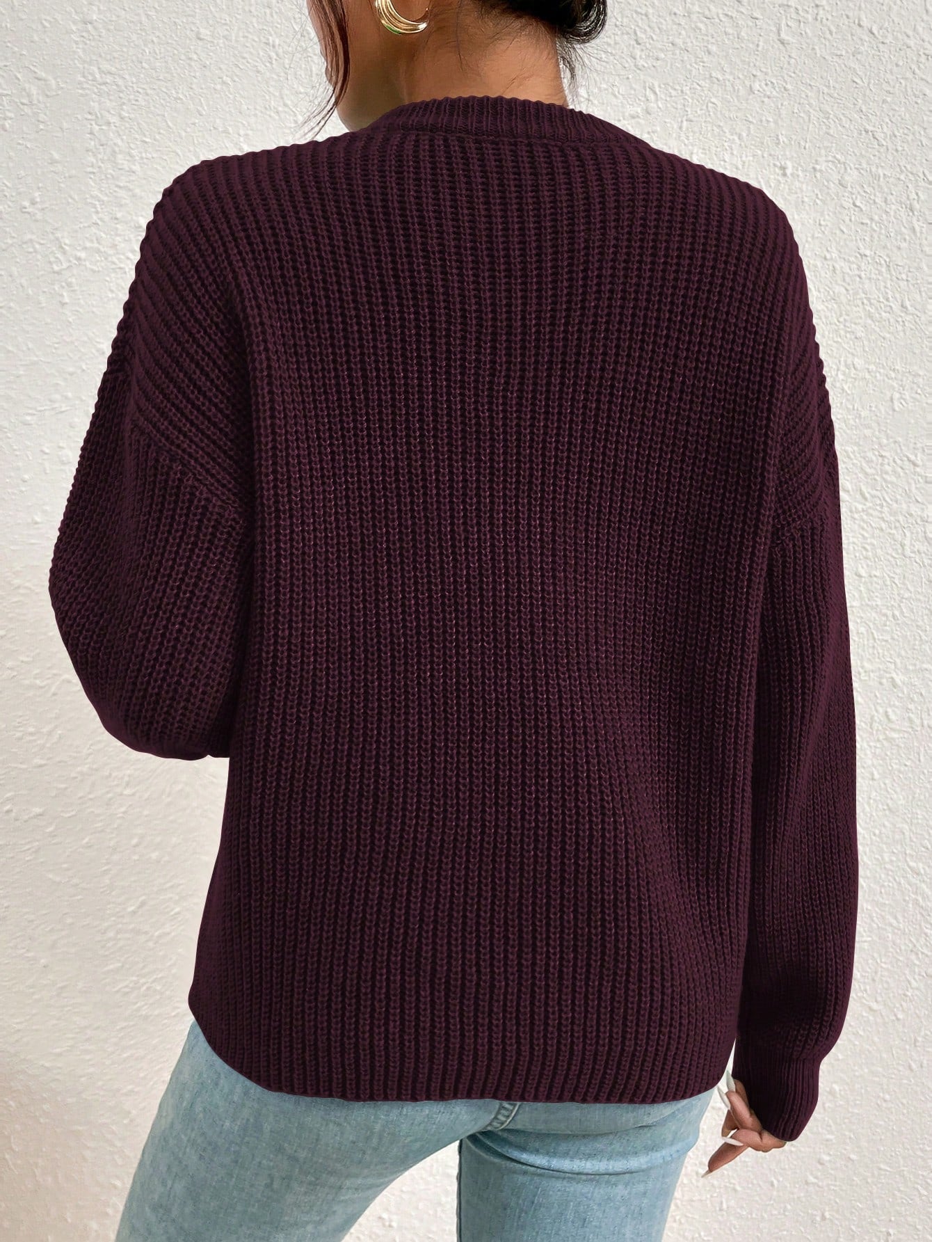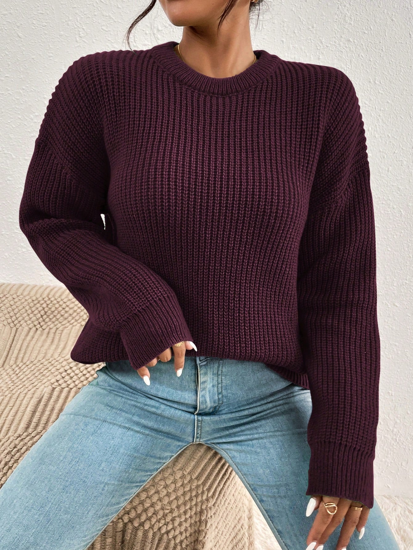 Women's Solid Color Round Neck Drop Shoulder Long Sleeve Casual Loose Pullover Sweater