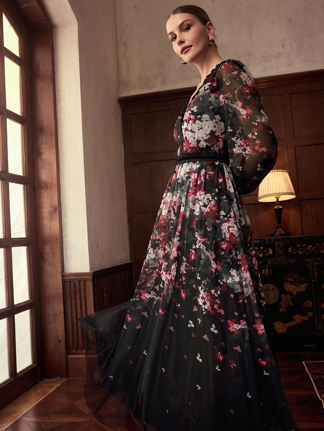 ZEYLAH Lace Patchwork Print Maxi Dress